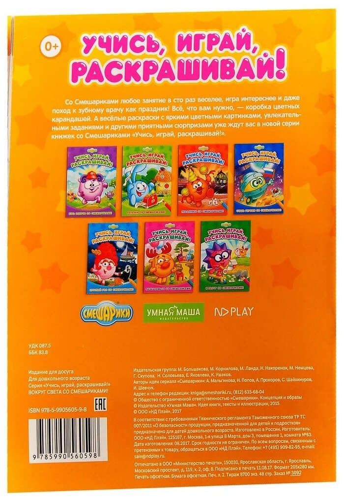 Со Смешариками любое занятие в сто раз веселее, игра интереснее и даже поход к врачу, как праздник! Всё, что Вам нужно - коробка цветных карандашей. А веселые раскраски, яркие цветные картинки, увлекательные задания и другие приятные сюрпризы ждут Вас в новой серии книжек со Смешариками "Учись, играй, раскрашивай".