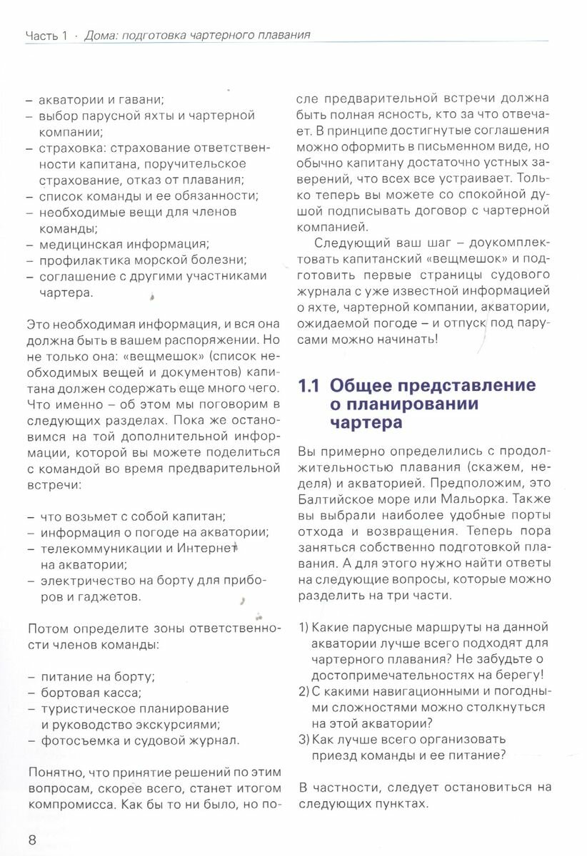 Правда, многим из них пришлось "изобретать велосипед", решая один вопрос за другим: как принять лодку и как сдать ее, как поступить со страховкой, как организовать судовую жизнь во всем ее многообразии - от распределения вахт и кулинарного меню, наконец, как справиться с незнакомой навигационной обстановкой и какие документы нужно иметь, чтобы заходить туда, куда хочется, и оставаться там сколько пожелаешь… Вопросов масса, а ответы на них есть в книге Людвига Бракмана "Чартер для всех". Она поможет не только тем, кто еще только подступается к чартеру, но и тем, кто уже не раз брал яхту в аренду. Более того, в книге рассказывается об особенностях чартера в самых популярных местах, таких как Средиземное и Карибское моря, Таиланд, Сейшелы… С этой книгой хороший отпуск под парусом гарантирован.