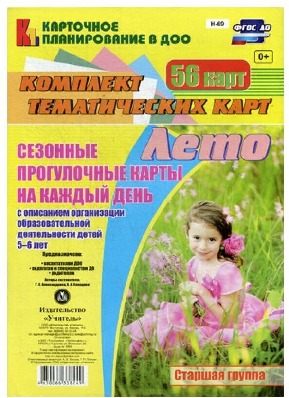 Сезонные прогулочные карты. Лето. Старшая группа. ДО (Холодова Ирина Александровна, Александрова Г. С.); Учитель, 2019