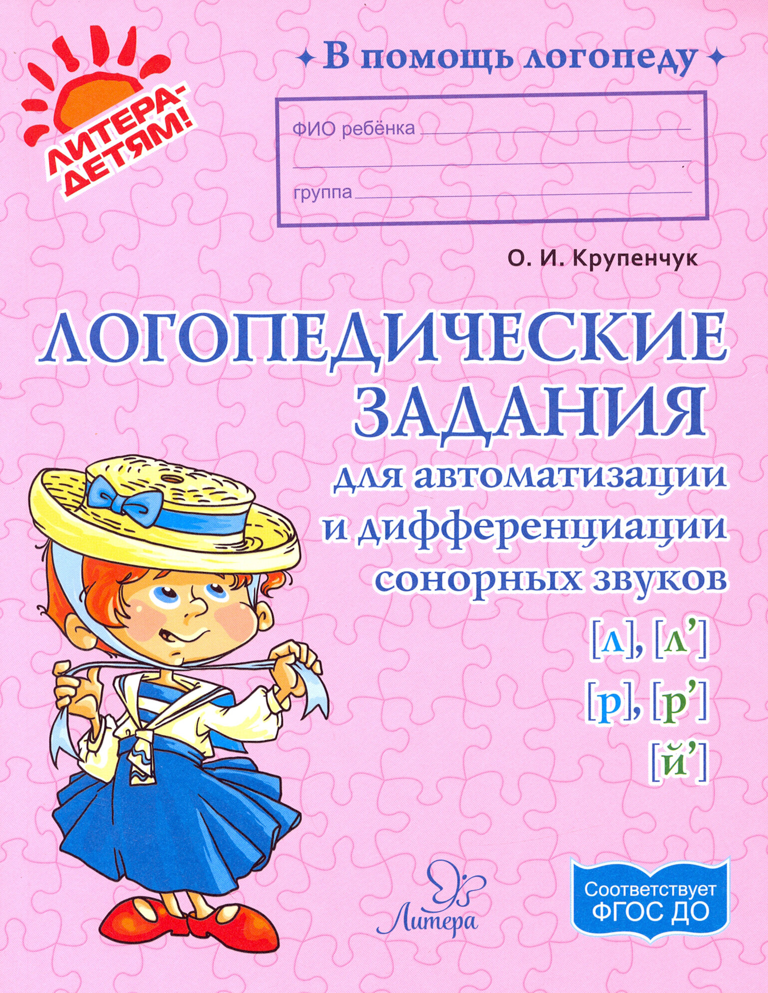 ![Книга: Логопедические задания для автоматизации и дифференциации сонорных звуков [л] [л'] [р] [р'][й'] (Ланская И.И. (художник), Крупенчук Ольга Игоревна); Литера, 2015](https://cdn.xn--80agbcqdjc3d.xn--p1ai/images/prodacts/290/61924/61924956_logopedicheskie-zadaniya-dlya-avtomatizatsii-i-differentsiatsii-sonornyih-zvukov-l-l-r-ry-litera.jpg)