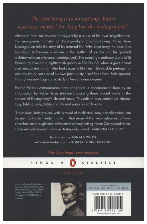 Alienated from society and paralysed by a sense of hose own insignificance, the anonymous narrator of Dostoyevsky's groundbreaking Notes from Underground tells the story of his tortured life. With bitter irony, he describes his refusal to become a worker in the 'anthill' of society and his gradual withdrawal to an existence 'underground'. The seemingly ordinary world of St Petersburg takes on a nightmarish quality in the The Double when a government clerk encounters a man who looks exactly like him - his double perhaps, or possibly the darker side of his own personality. Like Notes from Underground, this is a masterly tragi-comic study of human consciousousness.