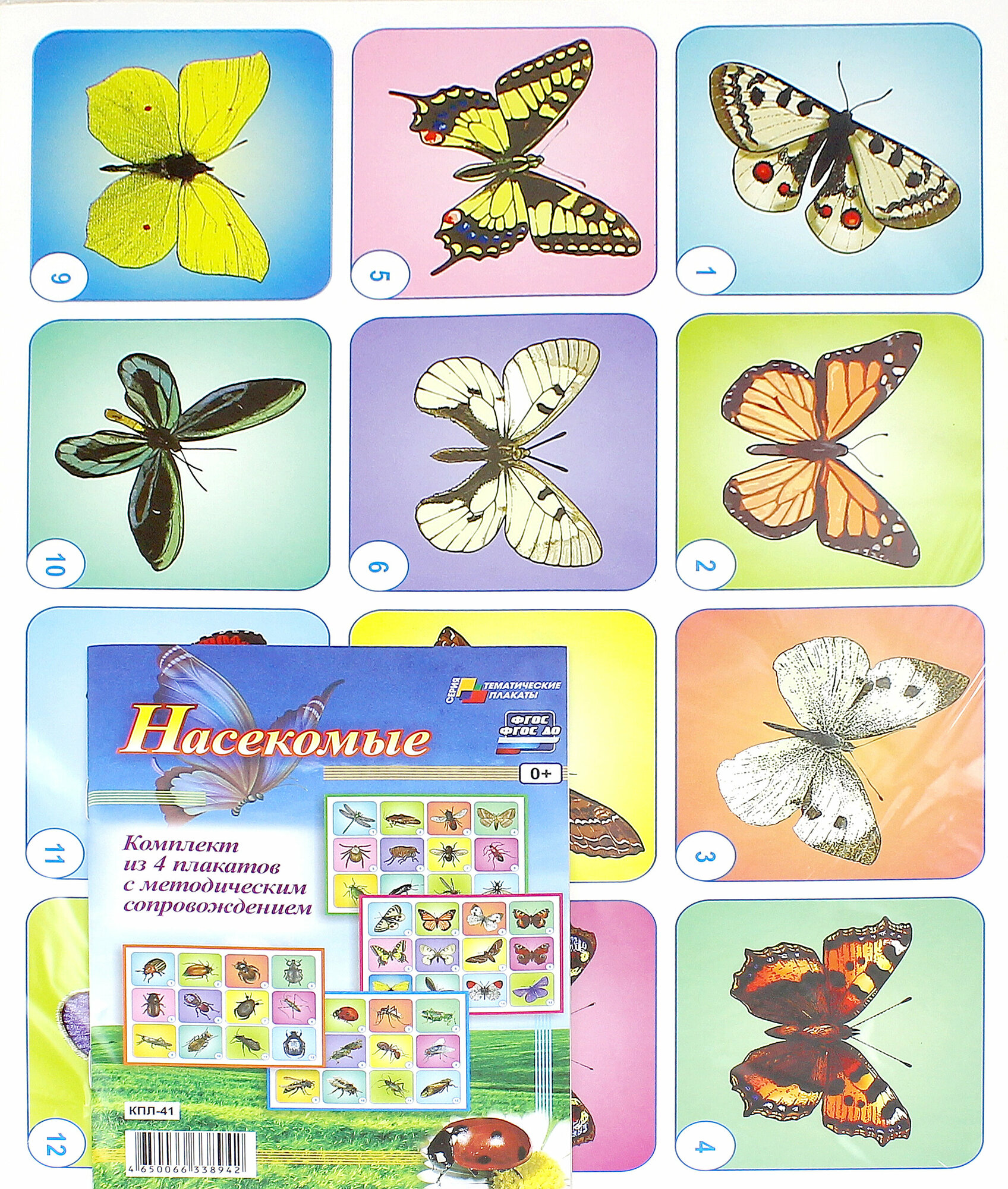 Комплект из 4 плакатов "Насекомые" с методическим сопровождением.