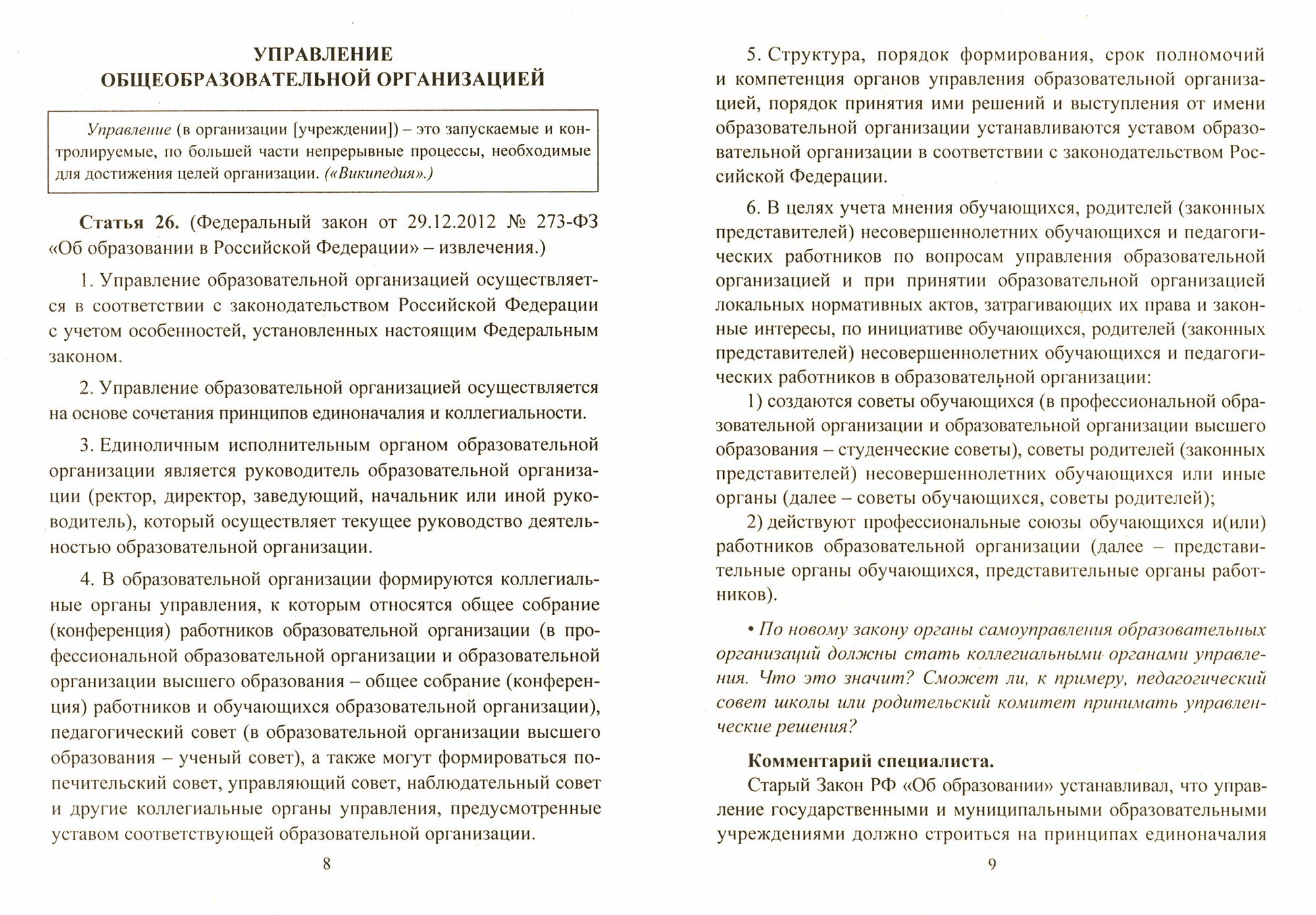 В книге предложены извлечения из нового Федерального закона "Об образовании в Российской Федерации", составляющие законодательную базу функционирования и развития общеобразовательной организации, а также комментарии специалистов в области образования и права, позволяющие руководителям и специалистам образовательных учреждений выстроить свою профессиональную траекторию в "правовом поле" деятельности и в соответствии с ФГОС.