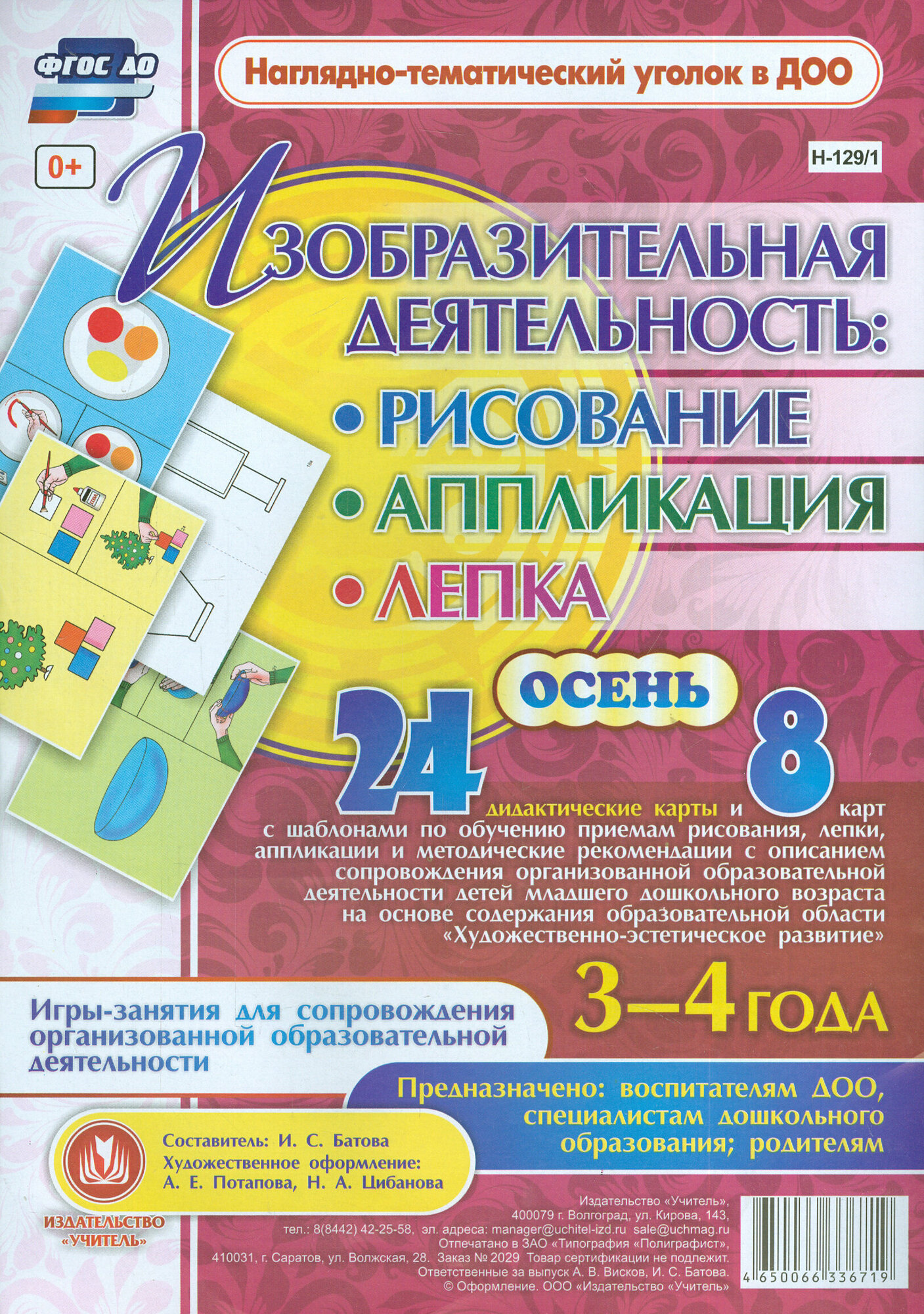 Изобразительная деятельность. Рисование лепка аппликация. Осень. 3-4 года. (Батова Ирина Сергеевна (составитель)); Учитель, 2020