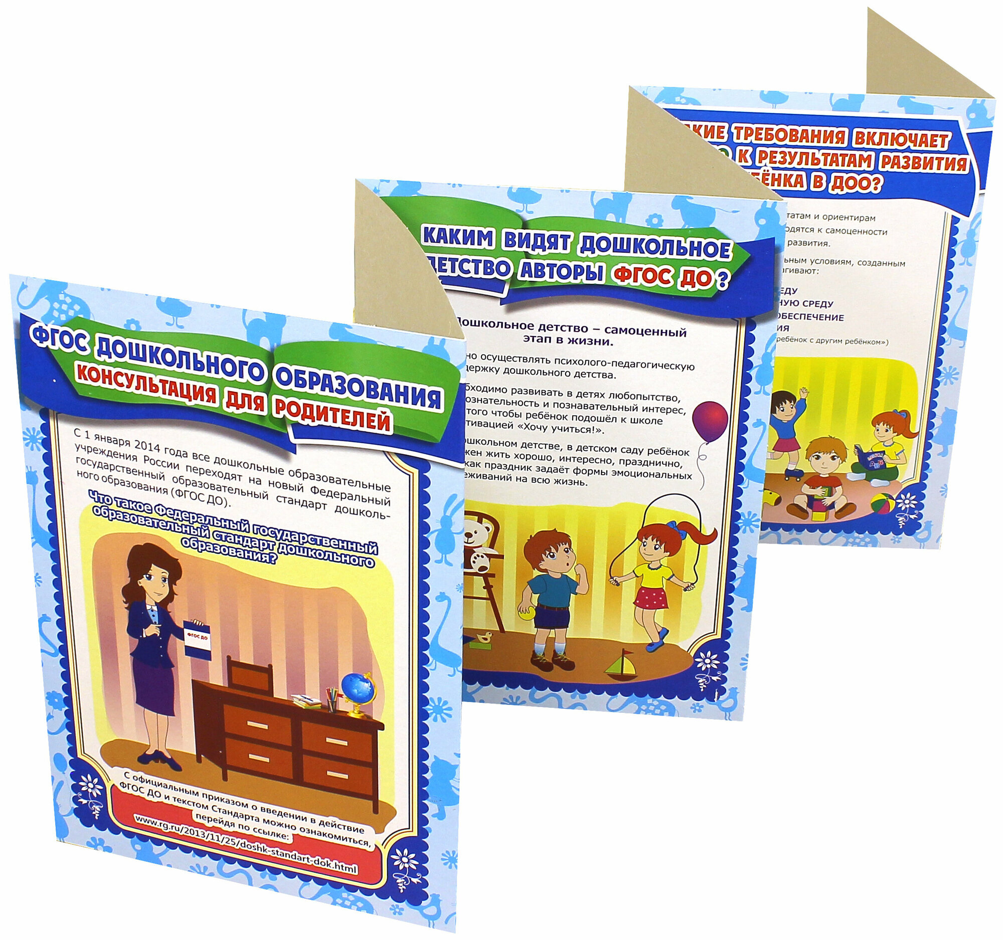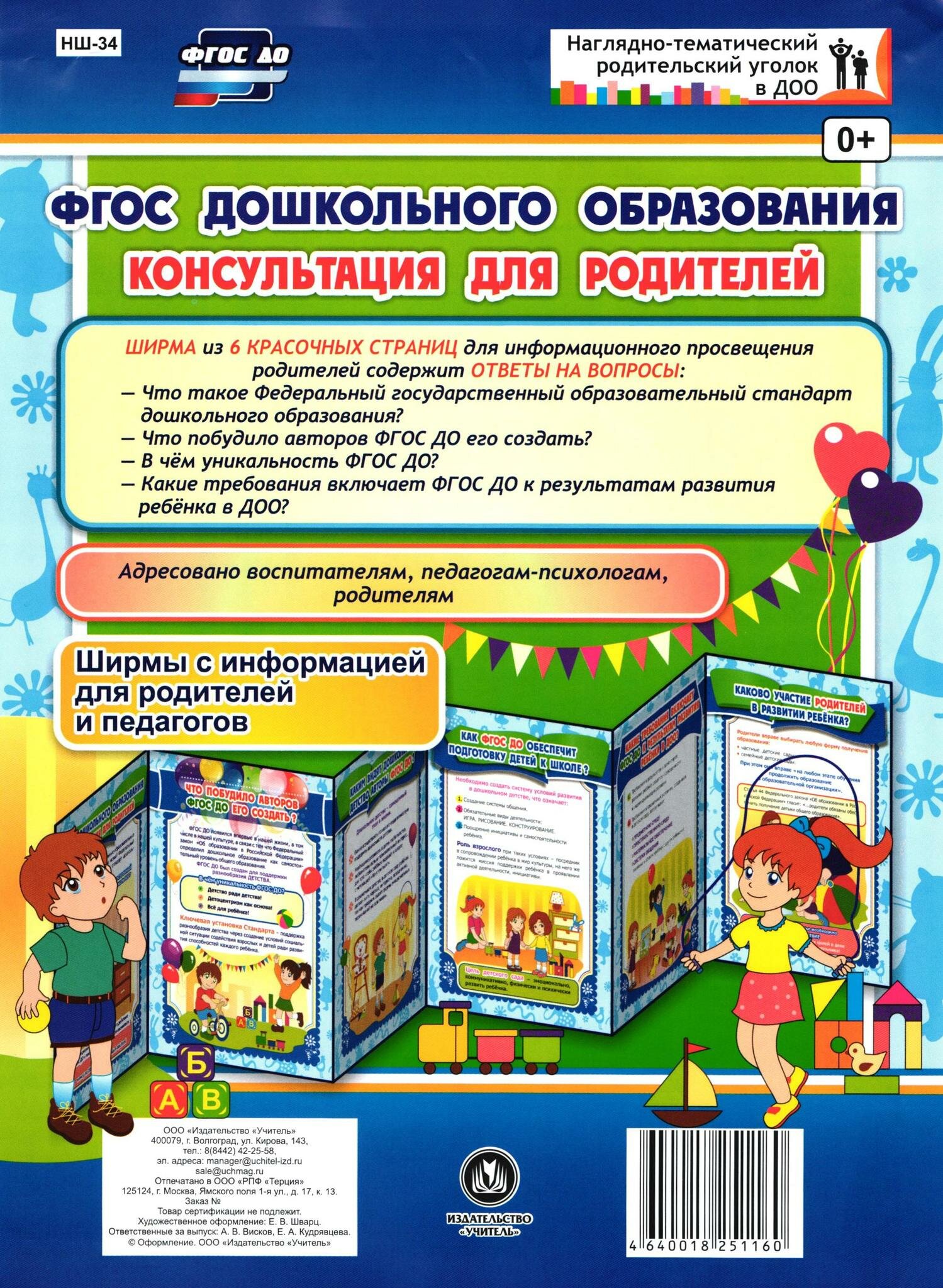 Ширма из 6 красочных страниц для информационного просвещения родителей содержит ответы на вопросы: