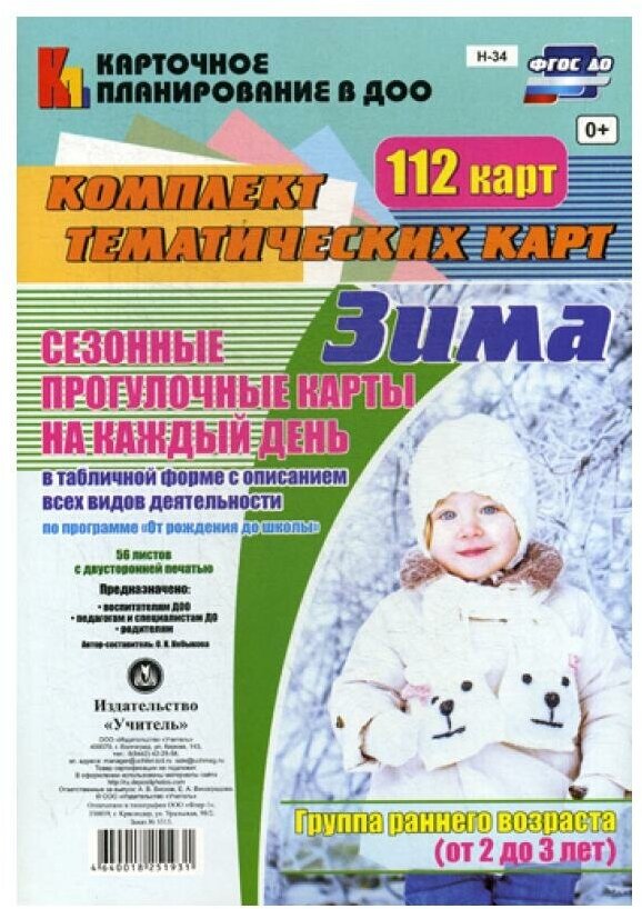 Сервис сравнения цен СкидкаГИД предлагает сравнить цены на товар «Книга: Сезонные прогулочные карты "Зима". Группа раннего возраста. ДО (Небыкова Ольга Николаевна); Учитель, 2017»