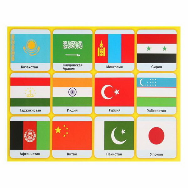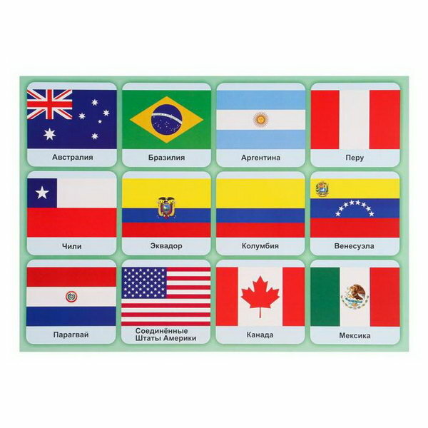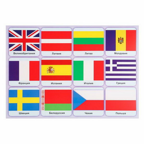 Ужасное пособие. Супруга заказала в ожидании флагов реально значимых стран, однако, в комплекте Европы отсутствовали флаги Германии и России, зато есть Латвия и Литва. Азия и Южная Америка выполнена так же отвратительно. Где Израиль? Зато есть Узбекистан и Таджикистан, но нет Грузии. Флаги выбраны непонятно по каким критериям, но ни логикой ни полезностью данное пособие не отличается.