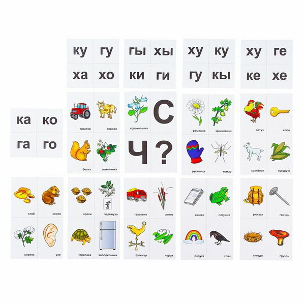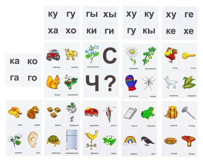 В комплекте: 36 предметных карточек, 20 слоговых жетонов.