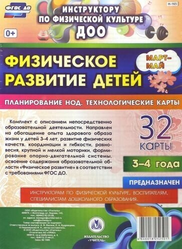 Физическое развитие детей 3-4 лет. Март-май. Планирование НОД. Технологические карты. (Недомеркова Ирина Николаевна); Учитель, 2017