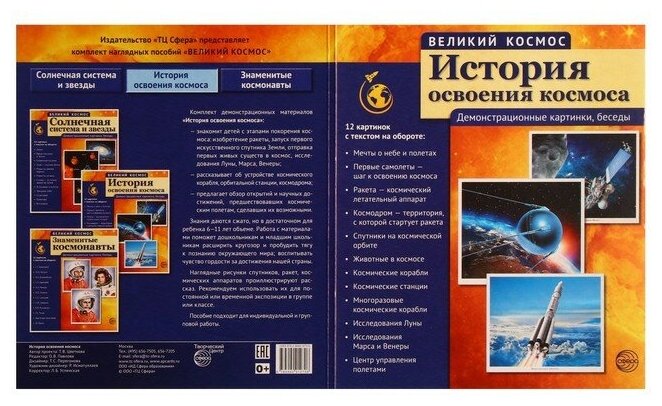 Сервис сравнения цен СкидкаГИД предлагает сравнить цены на товар «Книга: История освоения космоса (12 демонстрационных картинок с текстом) (Исматуллаев Рустам А., Цветкова Татьяна Владиславовна (соавтор)); ТЦ Сфера, 2016»