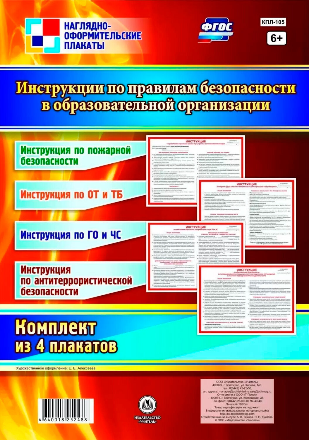 Комплект плакатов "Инструкции по правилам безопасности в образовательной организации". (без автора); Учитель, 2016