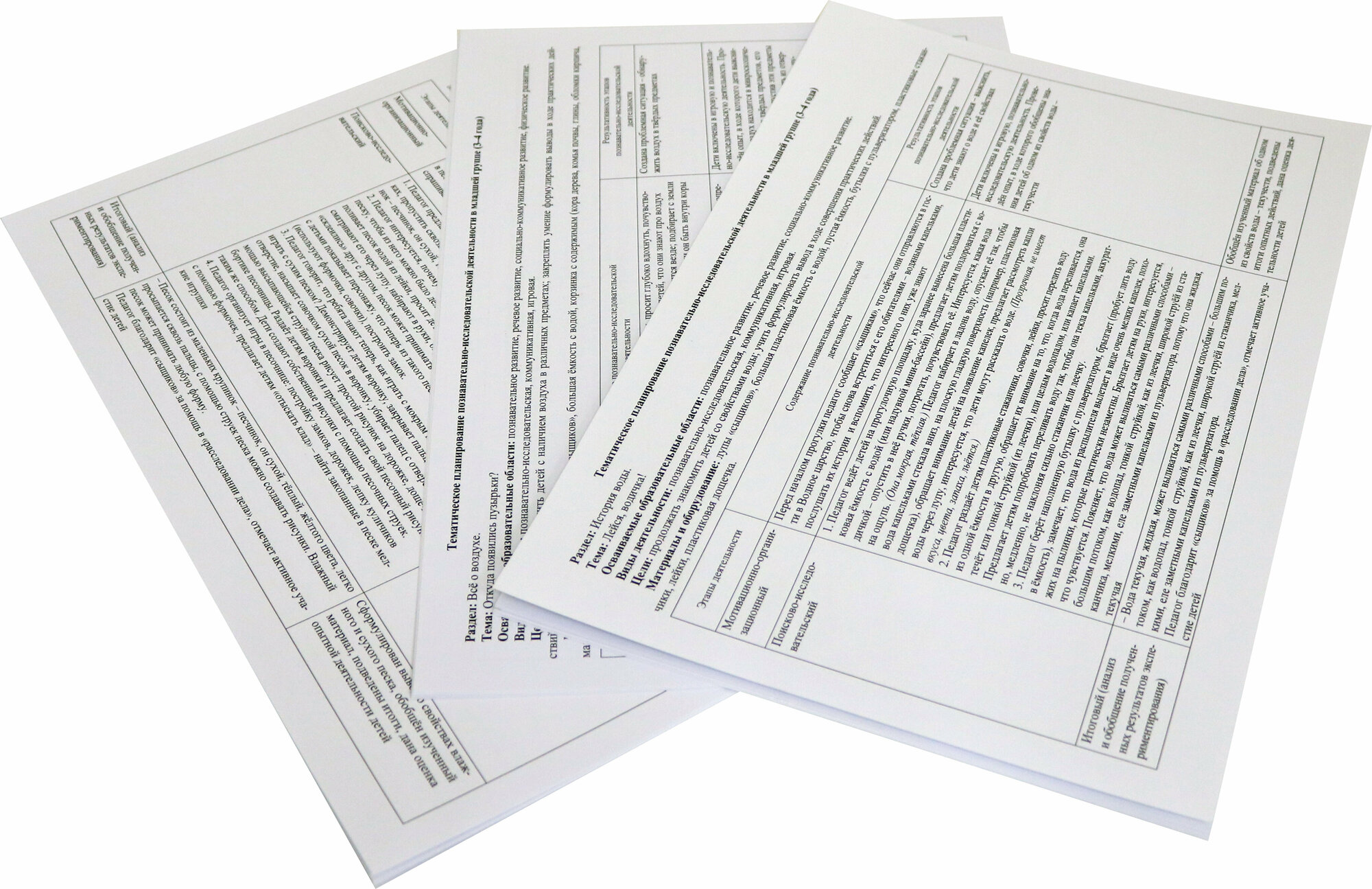 Карточки представляют из себя лист А4, чуть плотнее обычного, с темой прогулки на одной стороне и листом педагогического участия на обороте. Оборот у всех карточек одинаковый.