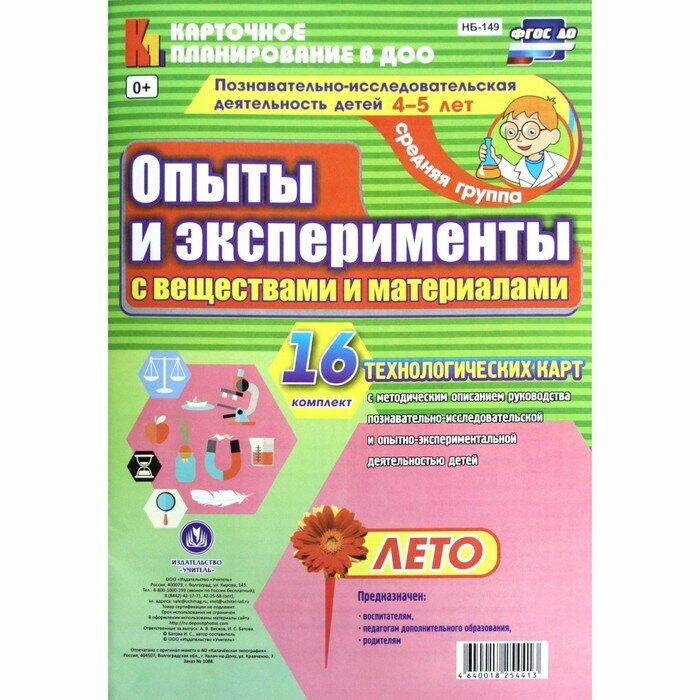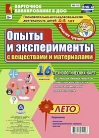 В комплекте 16 технологических карт с методическим описанием руководства познавательно-исследовательской и опытно-экспериментальной деятельностью детей.