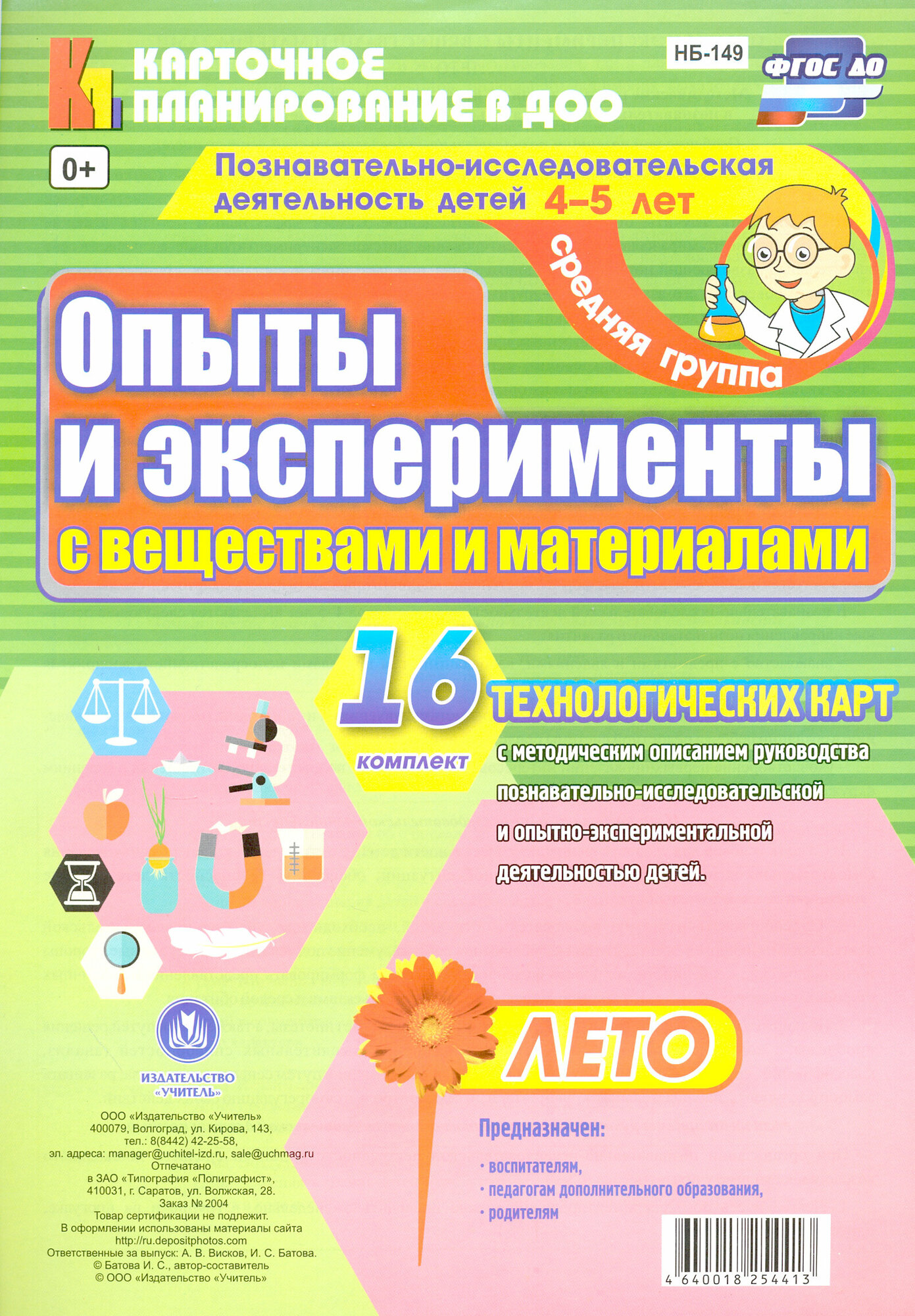 Познавательно-исследовательская деятельность детей. Лето. Средняя группа. ДО (Батова Ирина Сергеевна (составитель)); Учитель, 2017