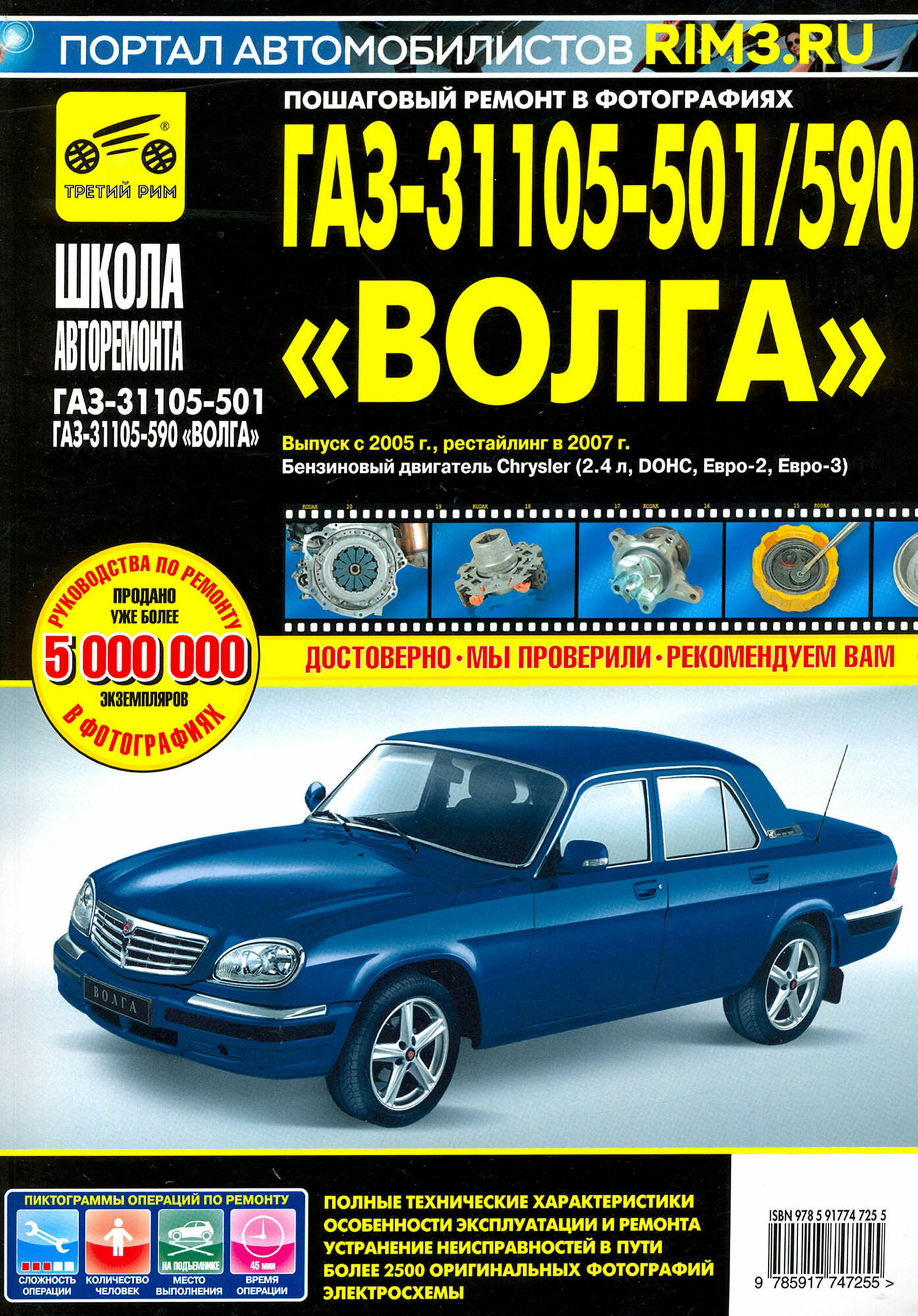Предлагаем вашему вниманию руководство по ремонту и эксплуатации автомобиля ГАЗ-31105-501/590 "Волга" с бензиновым двигателем Chrysler (2,4 л, DOHC, Евро-2, Евро-3), а также с салонами двух типов - классическим и обновленным. В издании подробно рассмотрено устройство автомобиля, даны рекомендации по эксплуатации и ремонту. Специальный раздел посвящен неисправностям в пути, способам их диагностики и устранения.