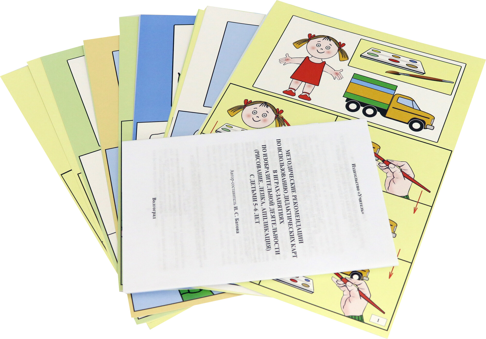 Предлагаемый наглядно-дидактический комплект включает в себя 16 дидактических карт, позволяющих воспитателю обучить детей 5-6 лет приемам изобразительной деятельности в рисовании, лепке, аппликации, а также методическое пособие по использованию игр-занятий.