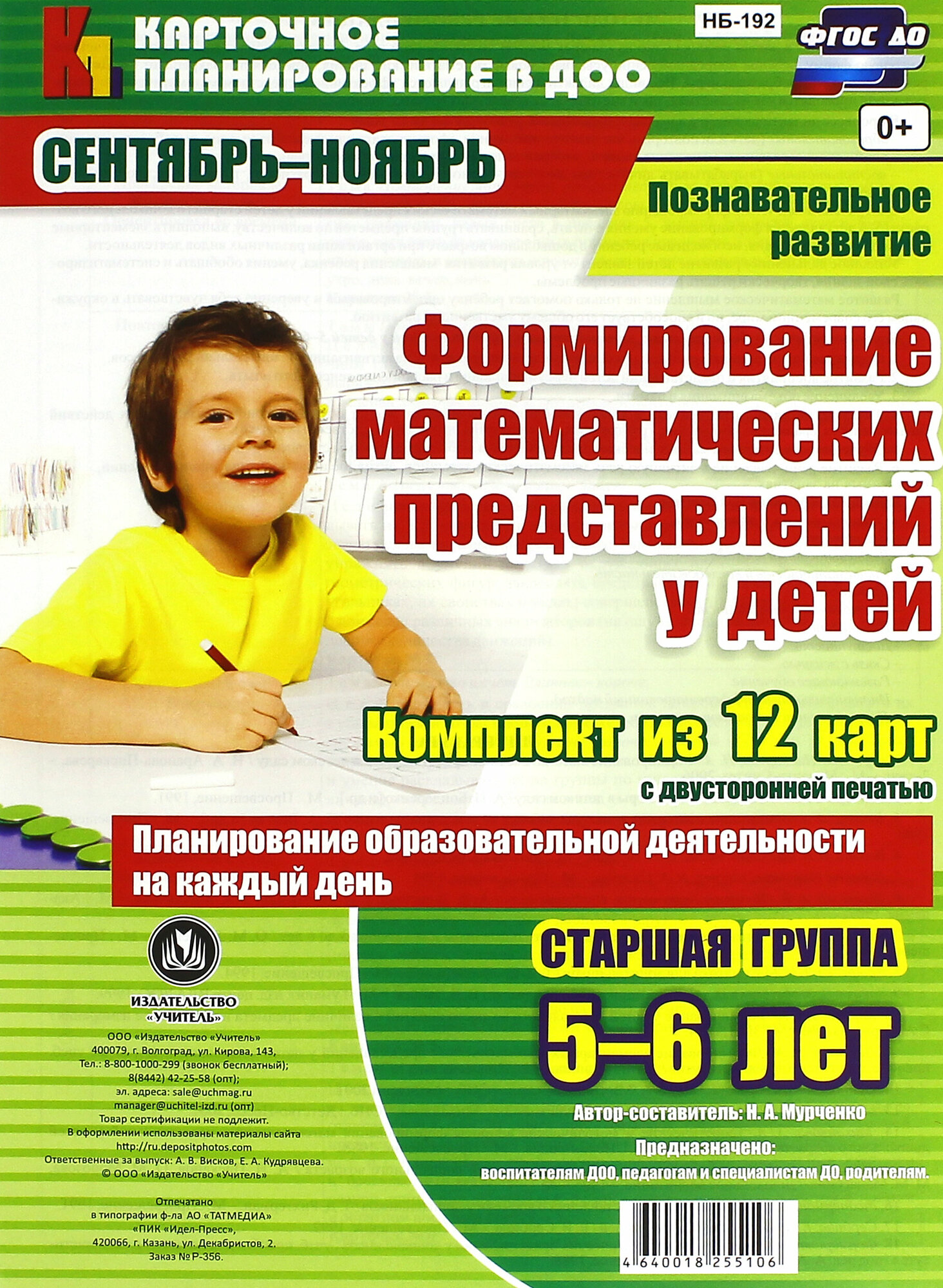 Формирование математических представлений у детей. Комплект из 12 карт. Старшая группа. 5-6 лет. (Мурченко Наталья Александровна); Учитель, 2017