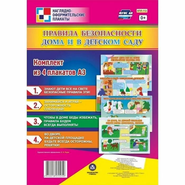 Комплект плакатов "Правила безопасности дома и в детском саду". 4 плаката. ; Учитель, 2020