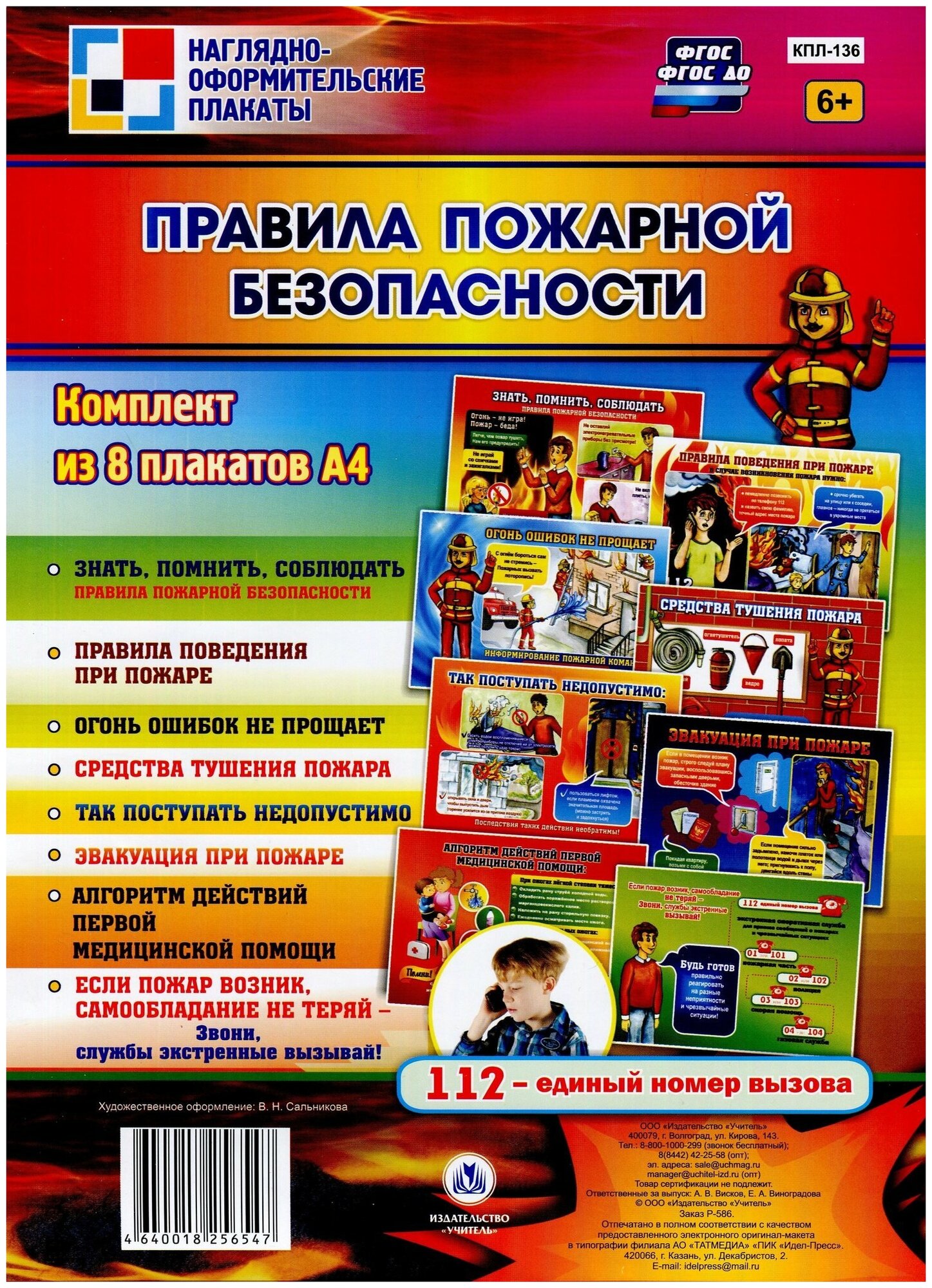 Правила пожарной безопасности. 8 плакатов. (Мария Вербицкая; Малколм Манн; Стив Taylore-Ноулз); Учитель, 2020