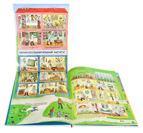Отличное дополнение к остальным наборам из серии. Книги представлены в виде вимельбухов. Ребёнок сразу заинтересовался и мы долго рассматривали, обсуждали и играли с ними. На страницах изображена жизнь целого города. Представитель каждой профессии занят своим делом. Дочка ещё расставляла мелкие игрушки по книге, ходила ими по городу, катала по дорогам мелкие машинки из шоколадных яиц. Например отправлялась в аэропорт или в больницу. В конце книг предлагается найти разные предметы, что оказалось весьма увлекательным занятием. Для совместного времяпровождения и для самостоятельного рассматривания очень хороший набор, позволяющий к тому же окунуться в удивительный и разнообразный мир профессий.Особенно интересно его использовать совместно с другими наборами академии.