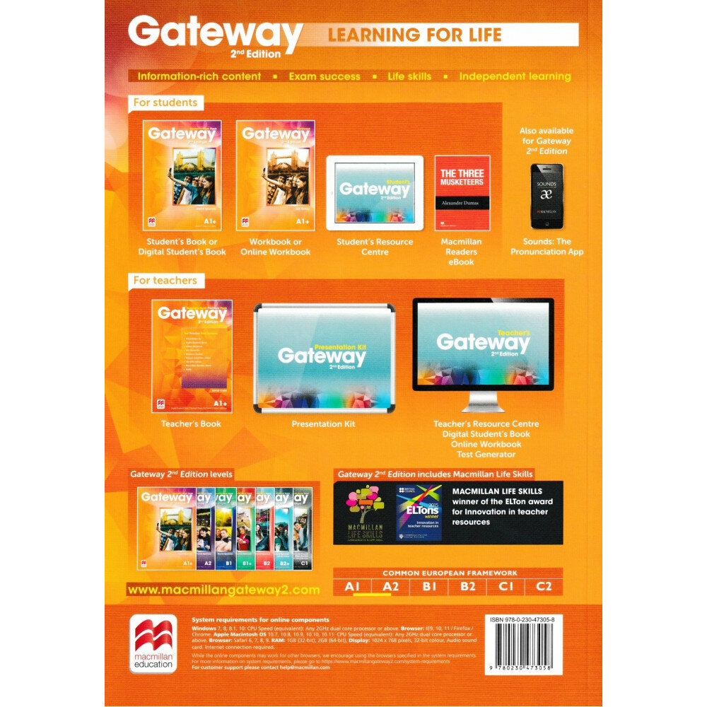 The Gateway 2nd Edition A1+ Student's Book Pack contains a strong exams focus and promotes exams task familiarisation throughout. This Student's Book Pack includes access code for the Student's Resource Centre provides the Class audio, Workbook audio, videos on Life skills and the Flipped classroom and a downloadable Macmillan eReader.