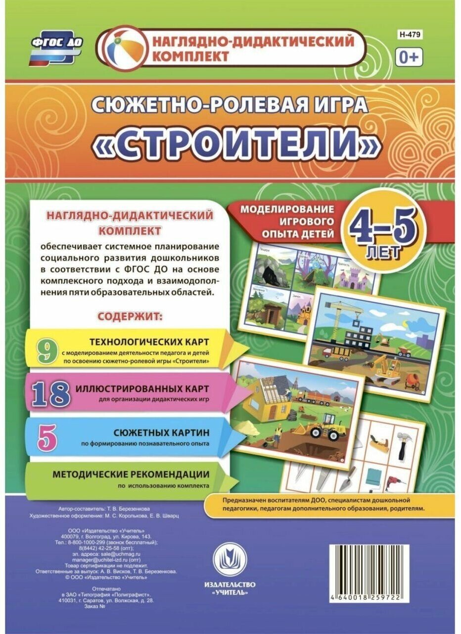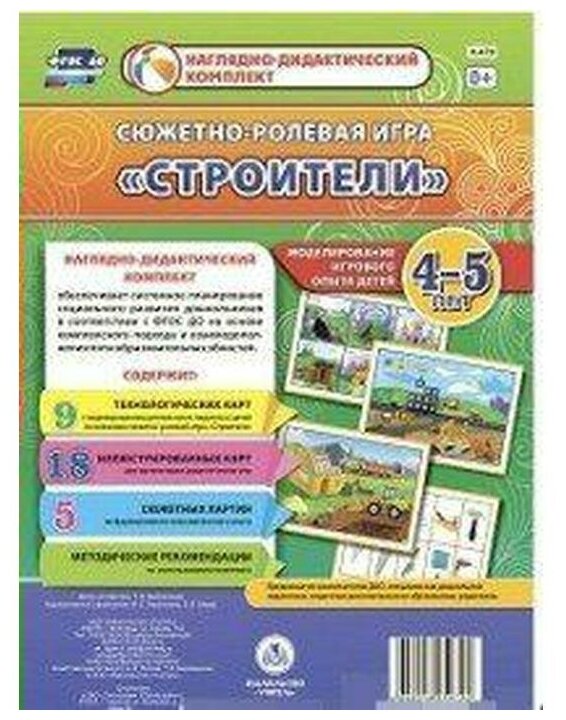 Предлагаемый наглядно-дидактический комплект включает 9 технологических карт, позволяющих комплексно, целостно и последовательно планировать образовательную деятельность по обогащению социального опыта детей 4-5 лет на основе содержания сюжетно-ролевой игры "Строители" в течение учебного года. Представлены также иллюстрированные разрезные карты и красочные сюжетные рисунки (23) для организации бесед, наблюдений, составления рассказов, дидактических игр обучающего и развивающего назначения, соответствующие теме.