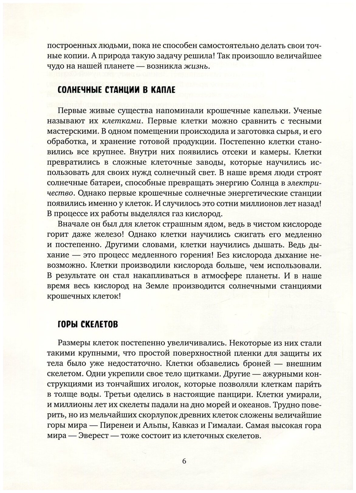 Книга - очень поверхностный исторический экскурс. Рассказывает о том, как зародилась наша галактика и планета Земля (якобы от взрыва звезды, по непонятным причинам), а далее как на Земле зародилась жизнь и как происходило развитие жизни (и все коротко и без объяснения причин). Считаю, слишком мало информации для среднего школьного возраста и подача однобокая. То что ученные до сих пор обсуждают различные версии происхождения планет и жизни, в книге не упоминается. Дана только одна самая упрощенная вариация на тему. Мне бы хотелось более глубокую книгу для дальнейшего изучения с ребенком.