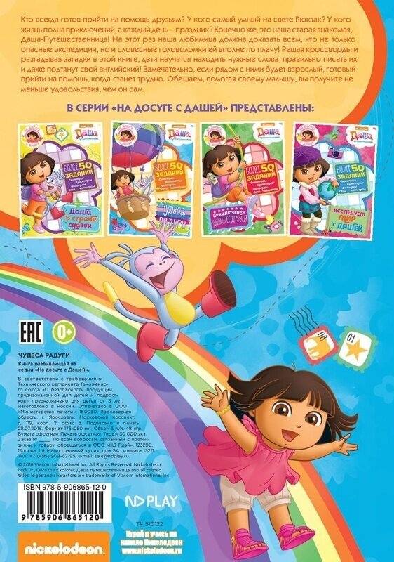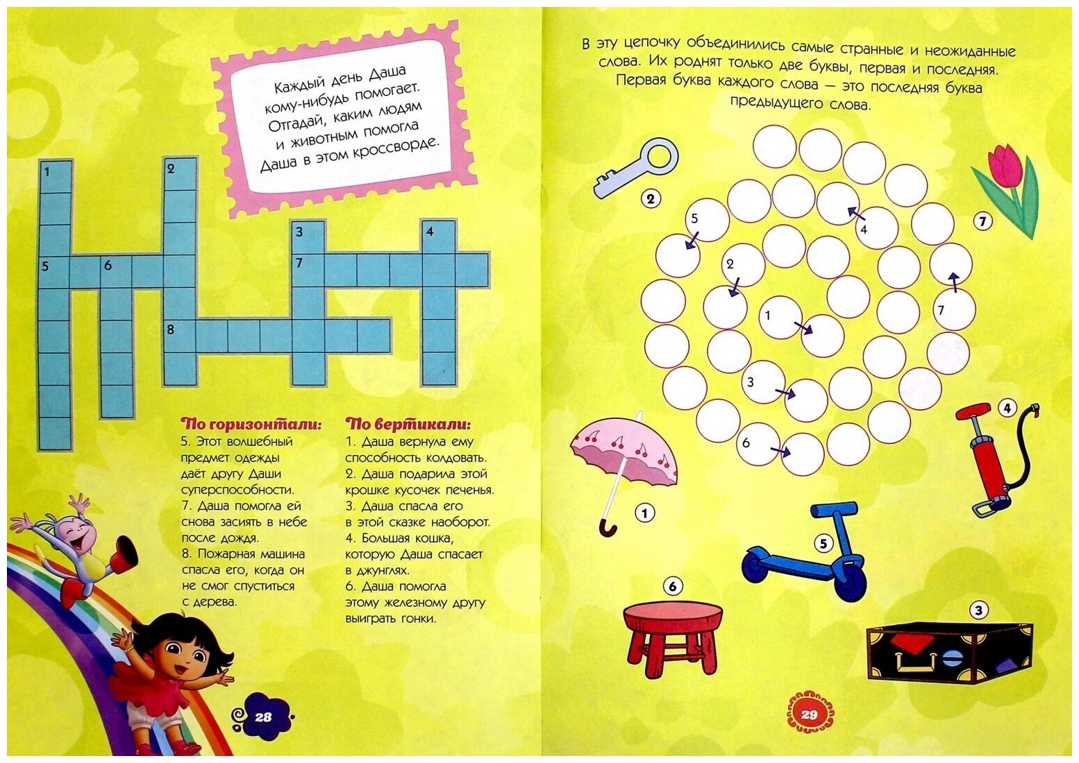 Кто всегда готов прийти на помощь друзьям? У кого самый умный на свете Рюкзак? У кого жизнь полна приключений, а каждый день - праздник? Конечно же, это наша старая знакомая Даша-Путешественница! На этот раз наша любимица должна доказать всем, что не только опасные экспедиции, но и словесные головоломки ей вполне по плечу! Решая кроссворды и разгадывая загадки в этой книге, дети научатся находить нужные слова, правильно писать их и даже подтянут свой английский! Замечательно, если рядом с ними будет взрослый, готовый прийти на помощь, когда станет трудно. Обещаем, помогая своему малышу, вы получите не меньшее удовольствие, чем он сам.