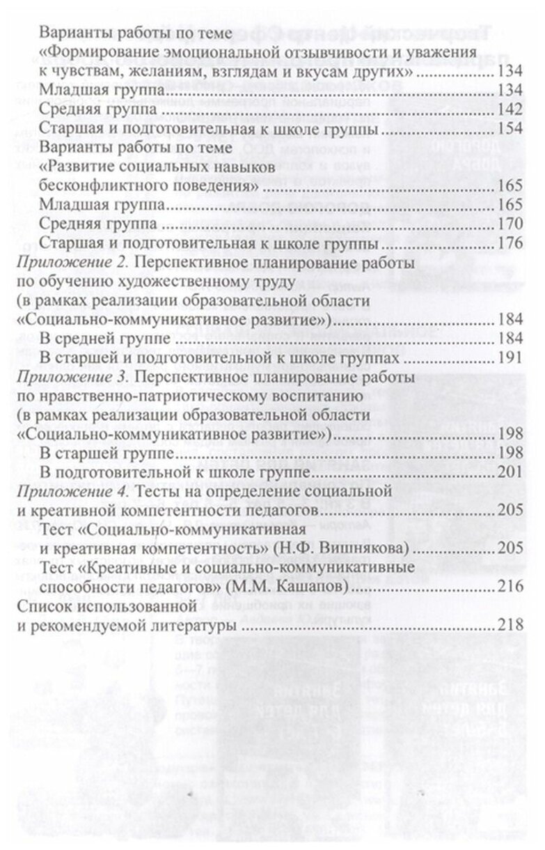 Предлагаемая программа разработана в соответствии с ФГОС ДО (от 17.10.2013 № 1155) и Примерной основной образовательной программой дошкольного образования (от 20.05.2015 № 2/15). В ней освещены основные проблемы социально-коммуникативного развития детей: формирование позитивного взаимодействия детей со взрослыми и сверстниками (в том числе, в игровой деятельности), уважительного отношения и чувства принадлежности к своей семье; развитие социального и эмоционального интеллекта, эмпатии и толерантности; воспитание ценностного отношения к труду и его результатам; основы безопасного поведения в быту, на улице и в природе и т.д. В приложении к Программе представлены тесты на определение социальной и креативной компетенции педагогов, варианты работы с детьми 3—7 лет по развитию социального и эмоционального интеллекта; перспективное планирование художественного труда детей 4—7 лет; перспективное планирование по нравственно-патриотическому воспитанию старших дошкольников.