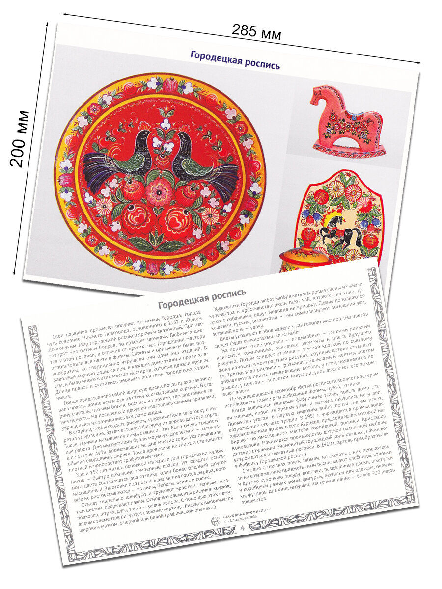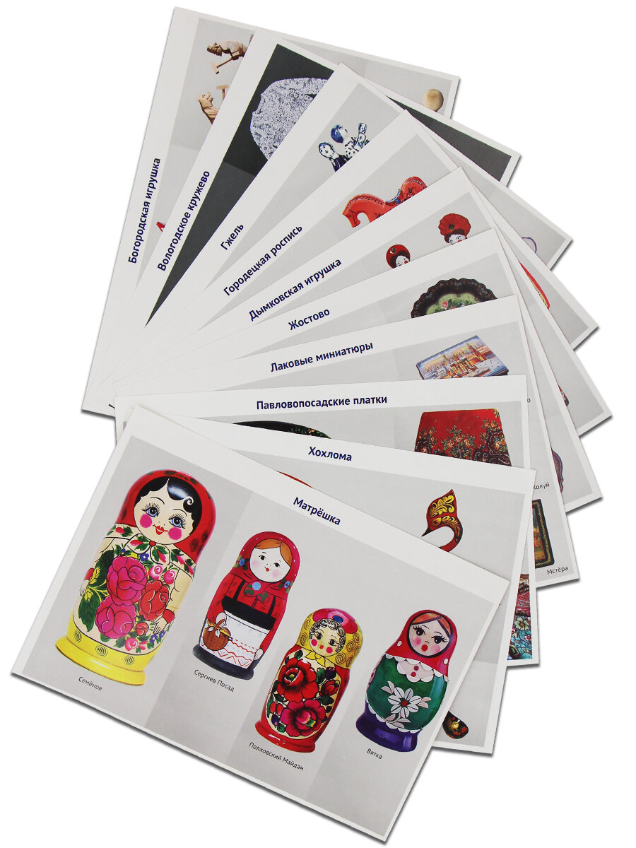 Данное наглядное пособие очень интересное, удобное в использовании, на обороте приведены сведения о каждом народном промысле, написано достаточно доступно. Пособие полезно и для детей, и для взрослых, так как не все знают российские народные промыслы и их особенности. Единственное, что смутило - отсутствие 12 раздаточных карточек, заявленных в описании товара.