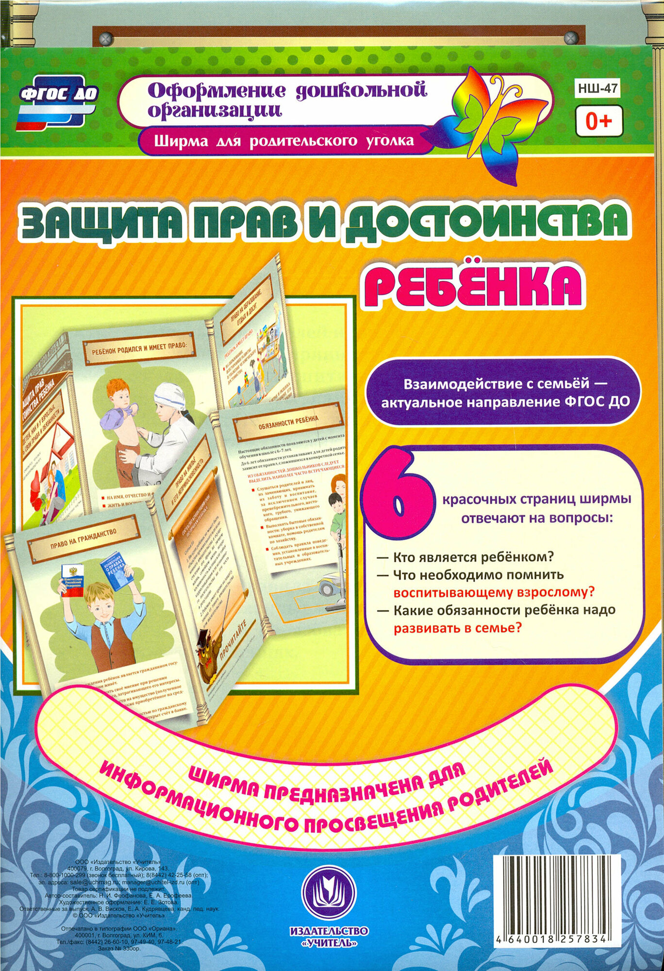 Защита прав и достоинства ребенка. Ширмы с информацией для родителей и педагог. из 6 секций. ДО (Феофанова Н. И., Ерофеева Е. А.); Учитель, 2017