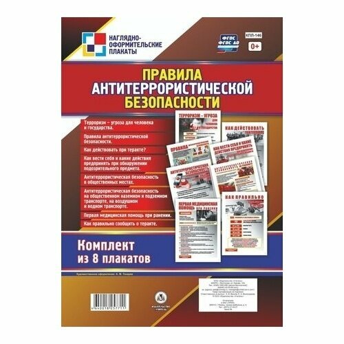 Правила антитеррористической безопасности. 8 плакатов. ДО (Токарев А. (худ.)); Учитель, 2020