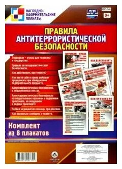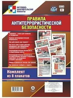 Комплект наглядно-оформительских плакатов "Правила антитеррористической безопасности" включает 8 жанровых красочных иллюстрированных плаката:
