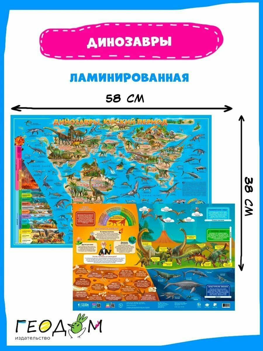 Настольная карта для детей "Динозавры. Юрский период" 58 х 38 см (ламинированная).