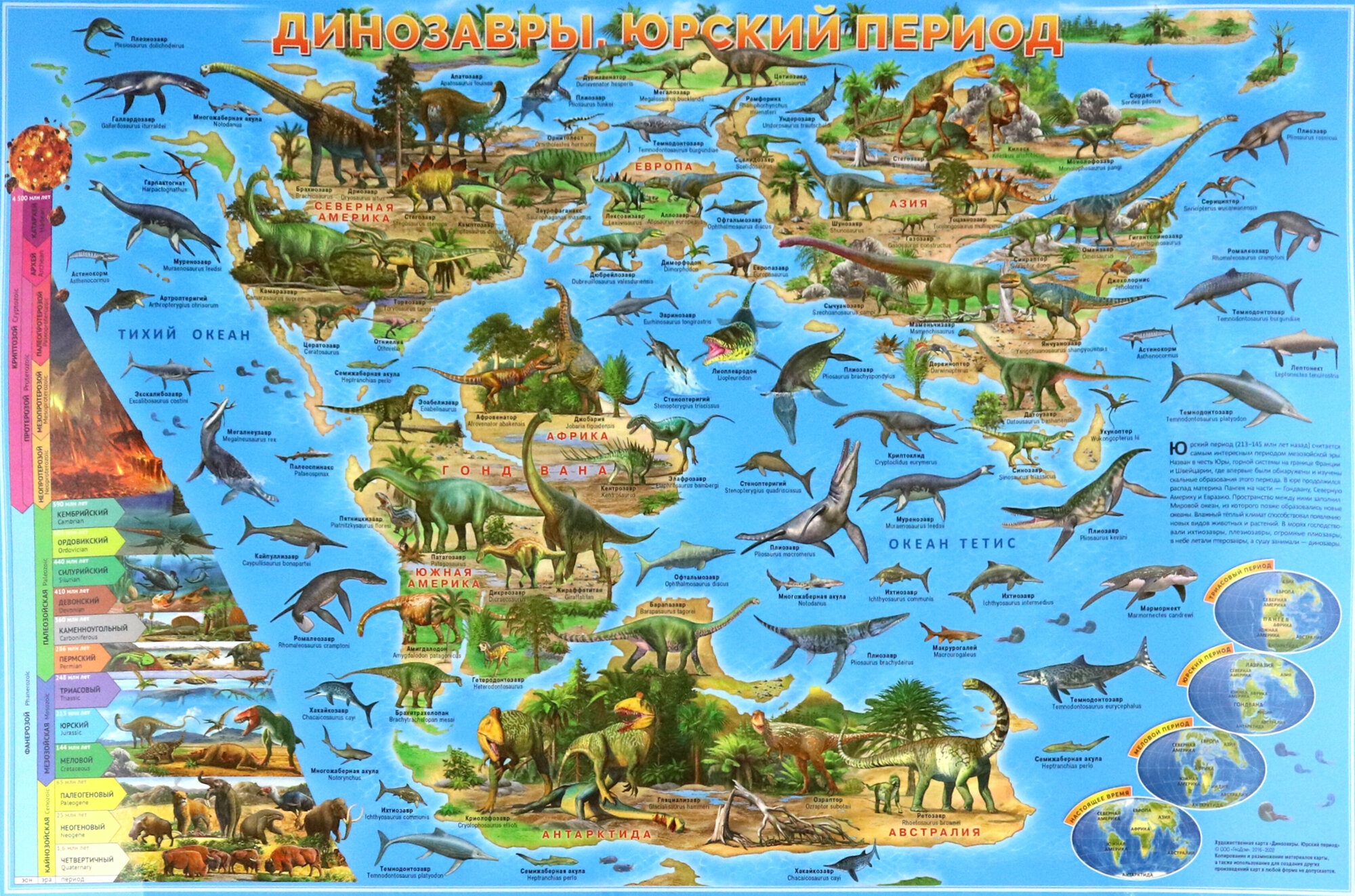 Динозавры. Юрский период. Художественная настольная карта для детей; ДонГис, 2020