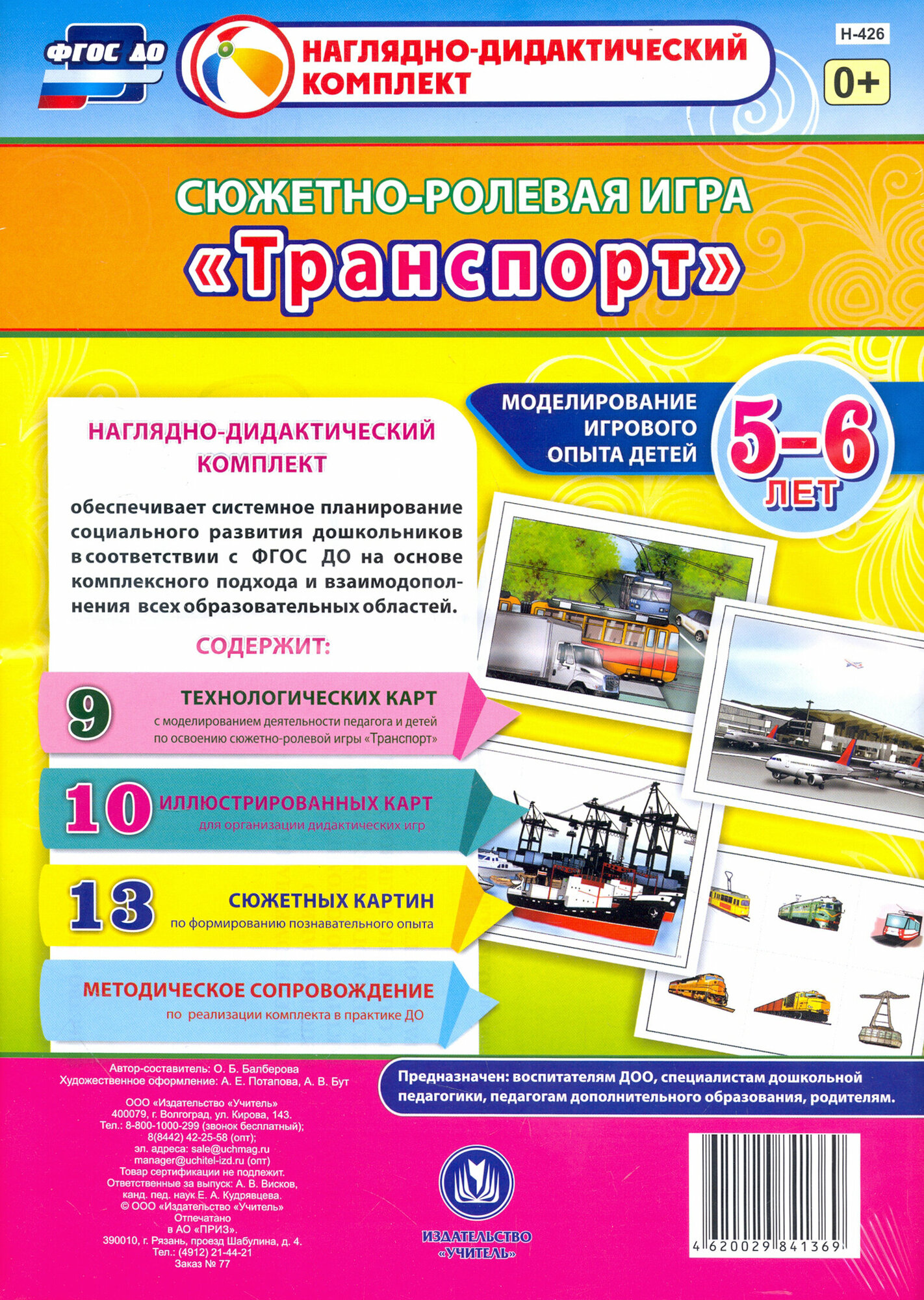 Предлагаемый наглядно-дидактический комплект включает 9 технологических карт, позволяющих комплексно, целостно и последовательно планировать образовательную деятельность по обогащению социального опыта детей 5-6 лет на основе содержания сюжетно-ролевой игры "Транспорт" в течение учебного года. Представлены также иллюстрированные разрезные карты и красочные сюжетные рисунки (23) для организации бесед, наблюдений, составления рассказов, дидактических игр обучающего и развивающего назначения, соответствующие теме.