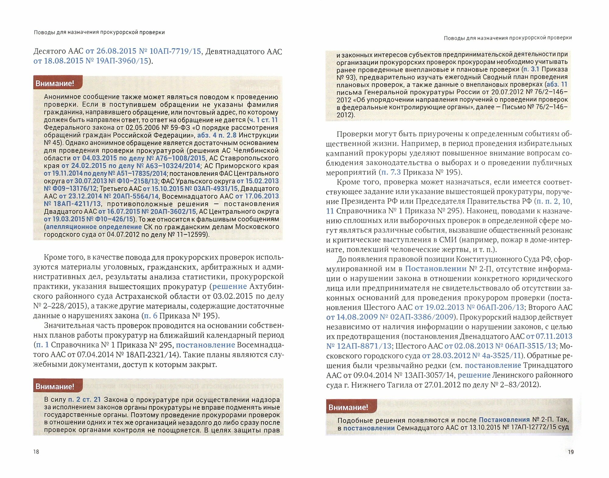 Кроме того, в книге приводится текст принятого в первом чтении законопроекта "О внесении изменений в Федеральный закон "О прокуратуре Российской Федерации", направленный на установление сроков проведения органами прокуратуры проверочных мероприятий, а также сроков исполнения проверяемыми органами (организациями) требований прокурора.