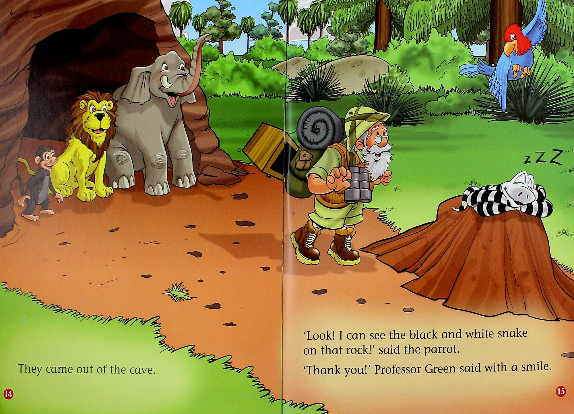 Professor Green and his friends go into the jungle to find the black and white snake. They meet some interesting animals along the way, but the black and white snake is hard to catch.