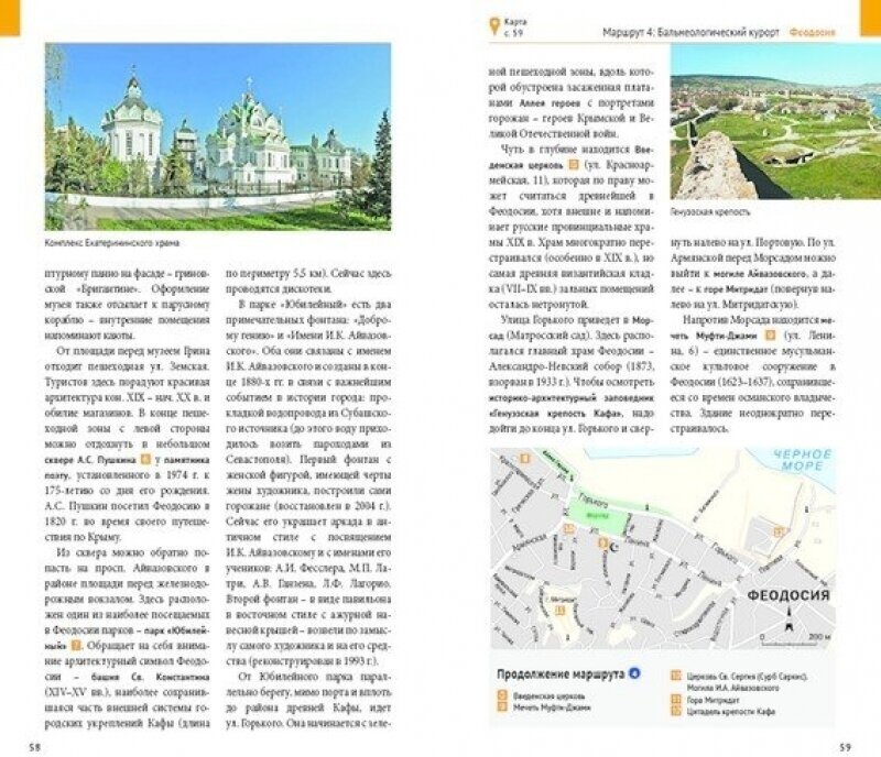 Рекомендую самостоятельным путешественникам, книга небольшая и лёгкая, и поместится без проблем в рюкзак. Покупали Путеводитель по Крыму перед своей поездкой, и давали друзьям(они тоже остались довольны). Очень удобное, правильное описание всех объектов. С помощью этого путеводителя составляли себе маршрут от Керчи до Евпатории. Есть большая карта всего Крыма, и в каждом городе/районе ещё подробные карты имеются на страницах книги с маршрутам. Также в путеводителе есть расписание автобусов и парома из Керчи. С помощью данного путеволителя любой Турист составит себе хороший маршрут для прогулок и ознакомления с полуостровом!!!