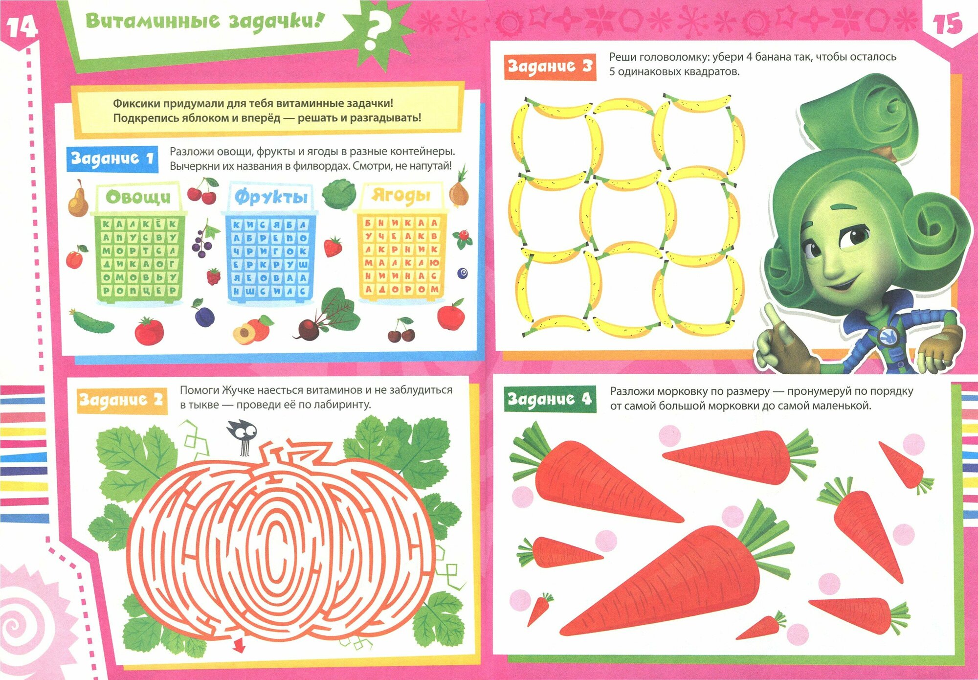 Сборник головоломок с любимыми персонажами (в книжке не только Нолик и Игрек, но и остальные фиксики). Заданий очень много: лабиринты, ребусы, филворды и другие логические игры. Есть познавательная информация (о мерах длины, о витаминах, микробах, правилах безопасности и пр.) и ходилка.