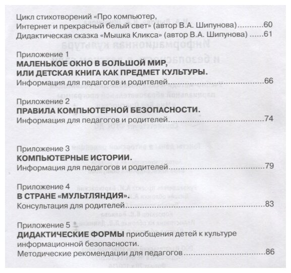 Книга входит в базовый учебно-методический комплект, сопровождающий парциальную образовательную программу "Мир Без Опасности". Поможет педагогам и родителям сформировать основы информационной культуры и безопасности у детей дошкольного возраста. Раскрывает ключевые понятия. Представляет образовательный контент для детей дошкольного возраста: содержания познавательных и ситуационных бесед, занятий и проектов, дидактических и подвижных игр, наблюдений и упражнений. Адресована руководителям и воспитателям детских садов, студентам педагогических колледжей и вузов, специалистам системы повышения клалификаций работников образования.