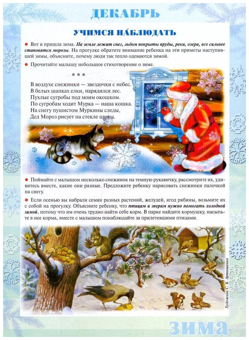 Покупала для детского сада по просьде методиста. Название говорит само за себя. Удобно для воспитателей - небольшие картинки + методические рекомендации по играм, наблюдениям, занятиям, досуге дома. Как родитель каждый раз с интересом читаю очередную картинку.