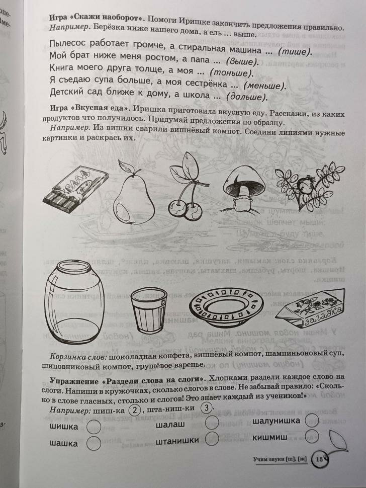 .Материал подобран таким образом, что может быть использован для индивидуальной работы с детьми с разным уровнем речевого развития. Предложенный комплекс домашних игровых тетрадей учитывает принцип «от простого к сложному» и позволяет логопеду поэтапно автоматизировать и дифференцировать звуки [ш], [ж].
