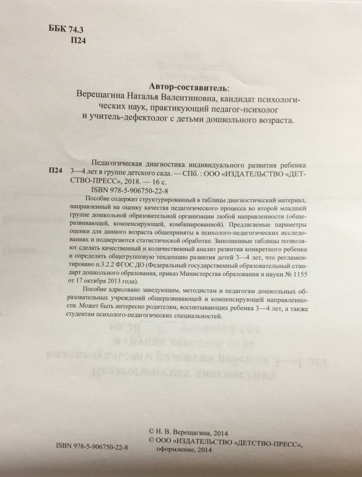 Сервис сравнения цен СкидкаГИД предлагает сравнить цены на товар «Книга: Диагностика педагогического процесса во второй младшей группе (с 3 до 4 лет) дошкольной образовательной организации (Верещагина Наталья Валентиновна); Детство-Пресс, 2020»