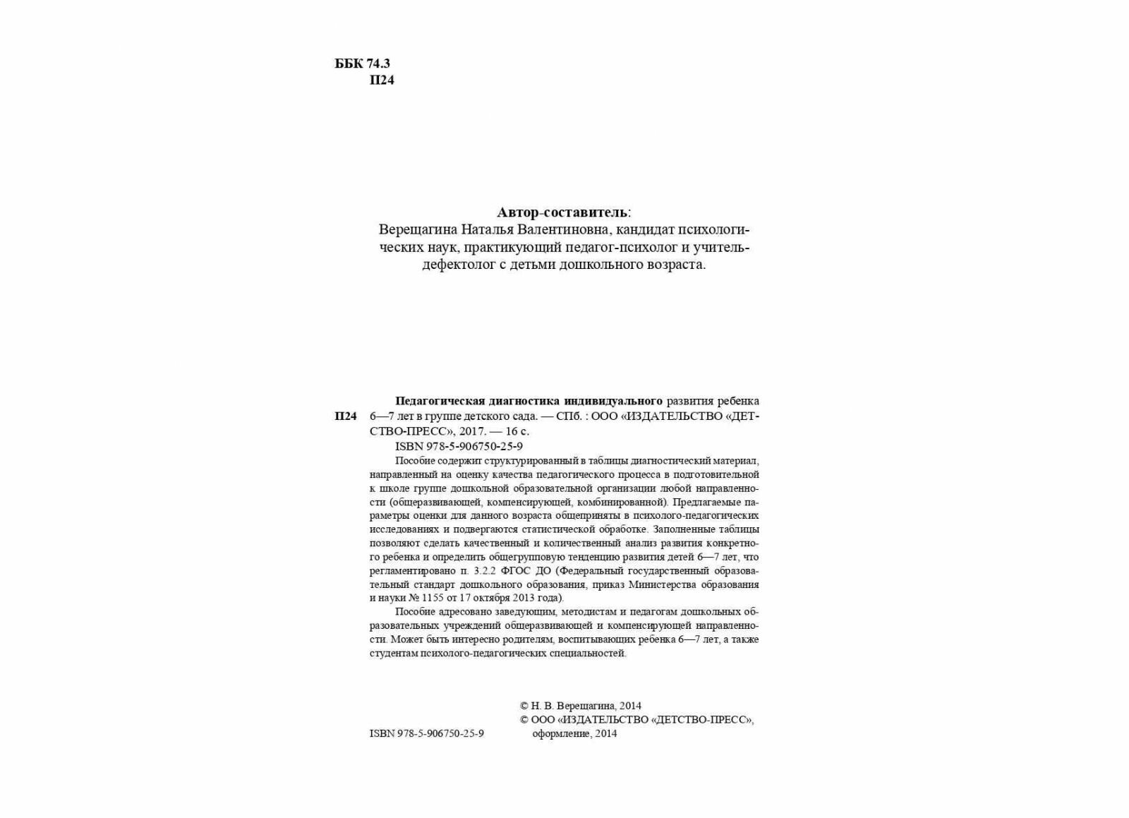 Диагностика педагог.процесса в Подготовительн.к школе гр.(с 6 до 7 л.)дошкольной образов.организ. (Верещагина Наталья Валентиновна); Детство-Пресс, 2021