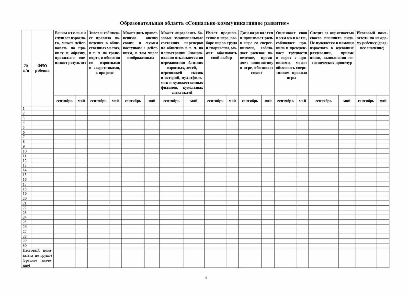 Все что было ранее, теперь распределено по 4-м образовательным областям,за счет увеличения параметров каждой области. Приведены даже примеры описания инструментария диагностики, короткие, но поясняющие.