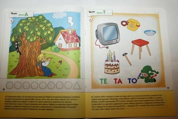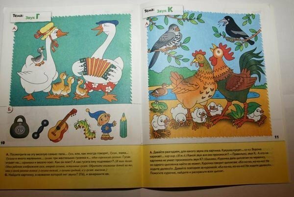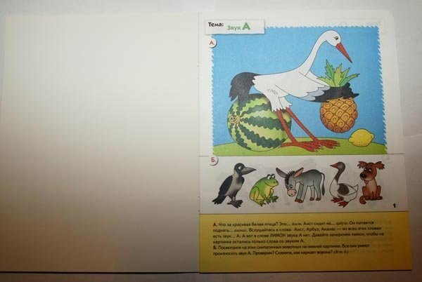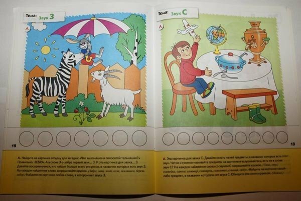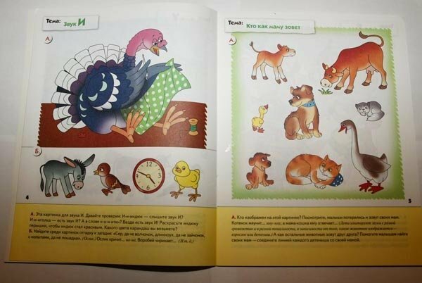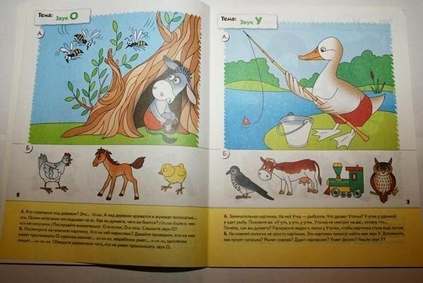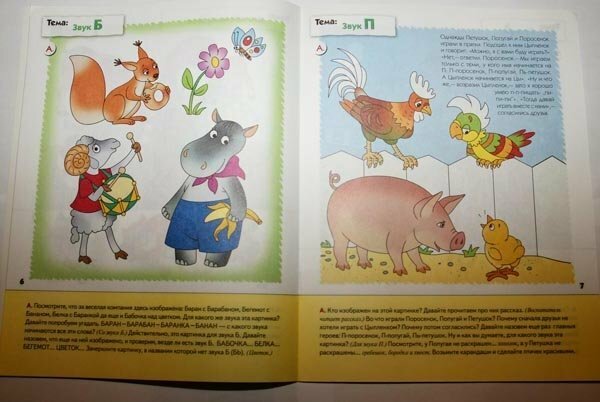 Качественное развивающее пособие для детей 3-4 лет. Объем - 16 страниц (и это плюс, т.к. для маленького ребенка подходит гораздо больше тяжелых, многостраничных томов). На каждой странице размещена крупная иллюстрация и задание. Понравился порядок расположения звуков для изучения (от простых к более сложным). Иллюстрации все цветные, выполнены в одном стиле, симпатичные. Бумага плотная, четкая печать, глянцевая обложка. Занимаемся с удовольствием.