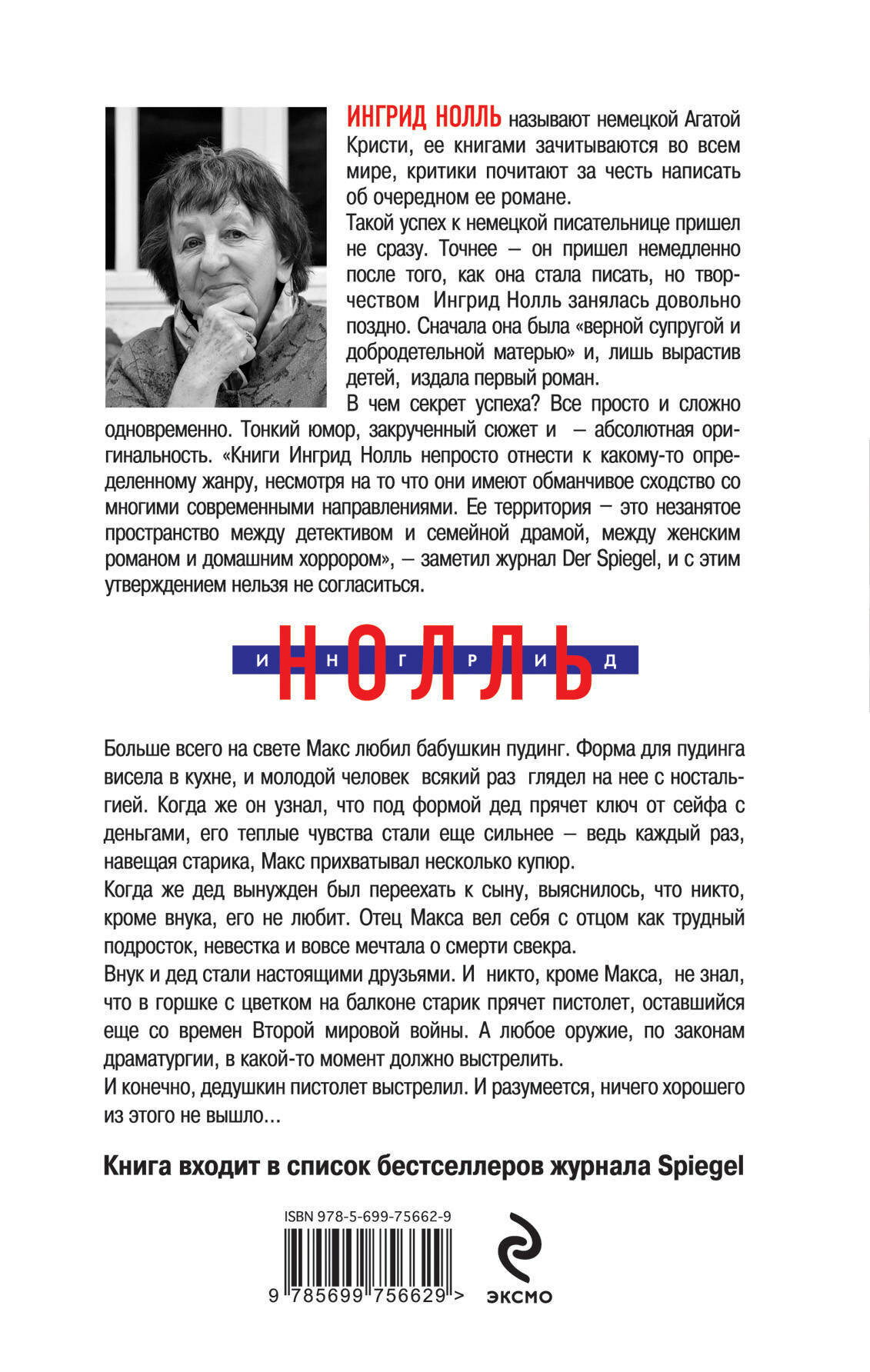 Больше всего на свете Макс любил бабушкин пудинг. Форма для пудинга в форме рыбы висела в кухне, и молодой человек всякий раз глядел на нее с ностальгией. Когда же он узнал, что под формой дед прячет ключ от сейфа с деньгами, его теплые чувства стали еще сильнее — ведь каждый раз, навещая старика, Макс прихватывал несколько купюр. Когда же дед вынужден был переехать к сыну, выяснилось, что никто, кроме внука, его не любит. Отец Макса вел себя с отцом как трудный подросток, невестка и вовсе мечтала о смерти свекра. Внук и дед стали настоящими друзьями. И никто, кроме Макса, не знал, что в горшке с цветком на балконе старик прячет пистолет, оставшийся еще со времен Второй мировой войны. А любое оружие, по законам драматургии, в какой-то момент должно выстрелить. И конечно, дедушкин пистолет выстрелил. И конечно, ничего хорошего из этого не вышло...