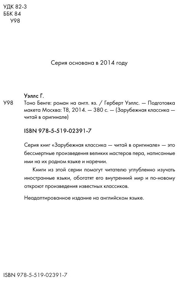 Сервис сравнения цен СкидкаГИД предлагает сравнить цены на товар «Книга: Tono Bungay (Герберт Джордж Уэллс); Книга по Требованию, 2014»