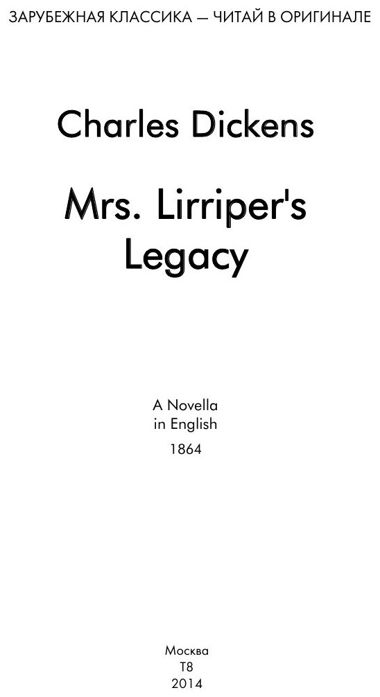 Книга: Mrs. Lirripers Legacy (Чарльз Диккенс); Книга по Требованию, 2014